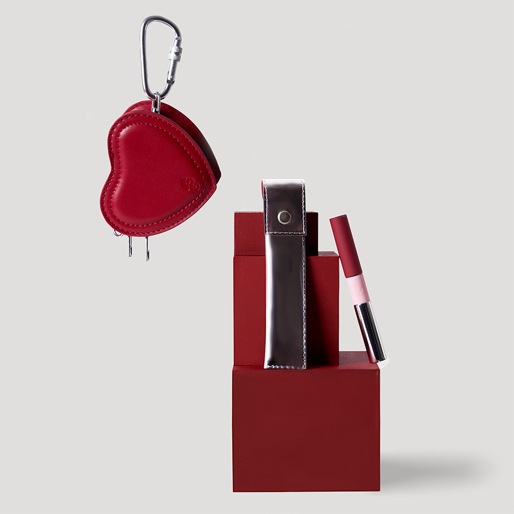 Mini bolsa/charm con cadena y mosquetón & Duo Labial Matte Rojo