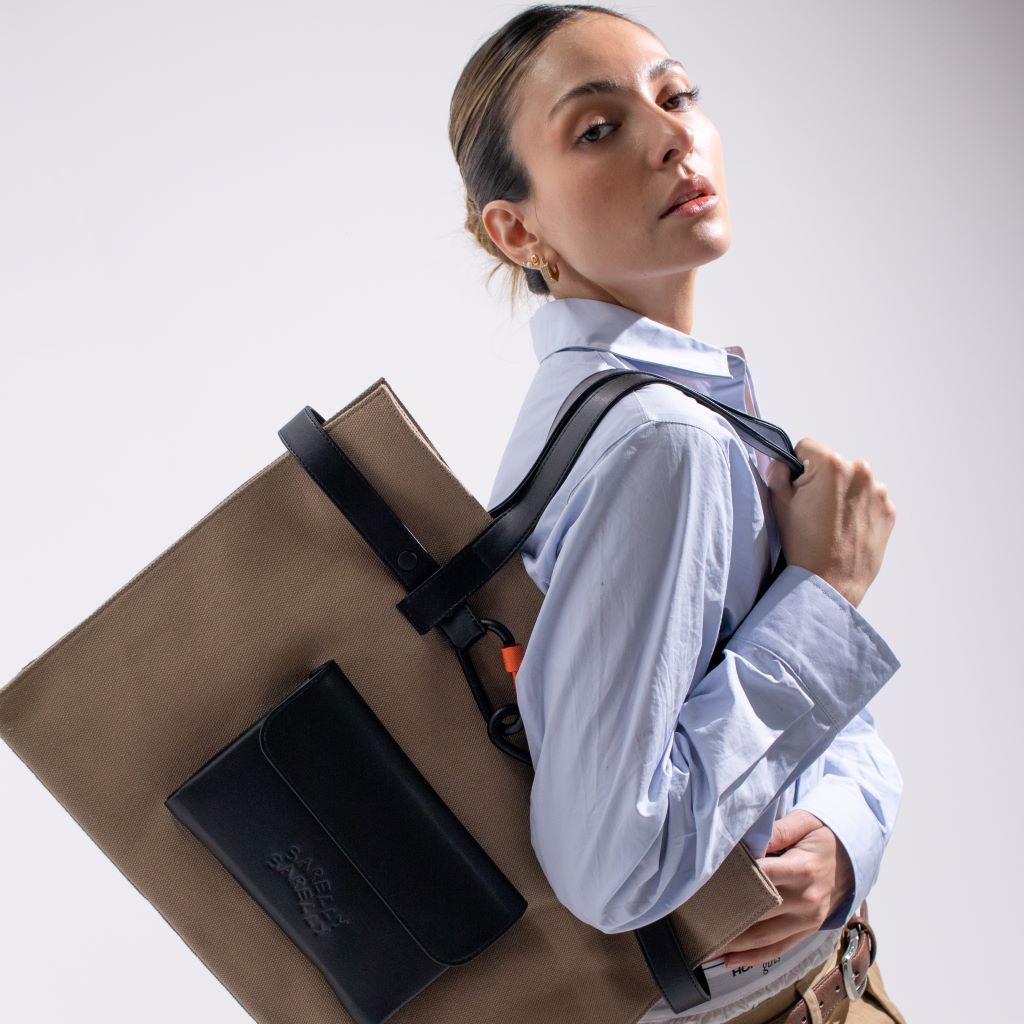 Nuestra bolsa best-seller en gabardina y piel de nopal. Un must have para el día a día, que combina estilo y practicidad.
